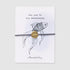 Dieses Produkt besteht aus einer Postkarte, einem Armband und einem Umschlag. Die Karte besteht aus gebrochen weißem, mattem Papier (300 g/m2). Die Maße der Karte sind 74 x 105 mm (A7). Das Armband ist aus Baumwoll-Wachsgarn mit einer handgefertigten Münze. Die Münze ist auch versilberten Messing.