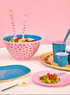 Melamin ist aufgrund seiner Festigkeit und Haltbarkeit eine beliebte und robuste Wahl für Geschirr und eignet sich daher ideal für den täglichen Gebrauch durch Kinder und Erwachsene. Es ist leicht zu reinigen und nimmt weder Farbe noch Geschmack von Lebensmitteln an. Denke daran, dass Melaminprodukte nicht für die Mikrowelle geeignet sind.