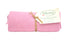 Ein gestricktes Handtuch gebunden mit Schnur und Etikett.