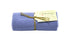 Ein gestricktes Handtuch gebunden mit Schnur und Etikett.